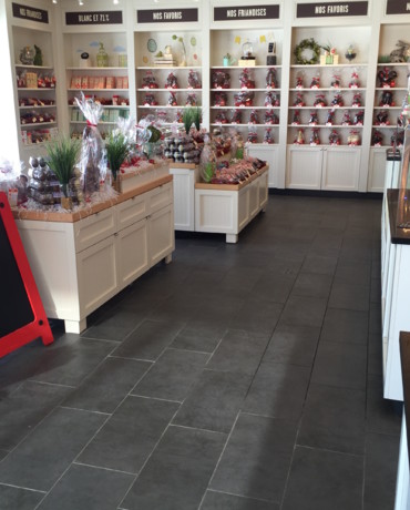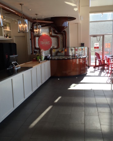 Trois-Rivières Mandat : Réalisation de tous les revêtements de plancher dans le nouveau Chocolats Favoris à Trois-Rivières.